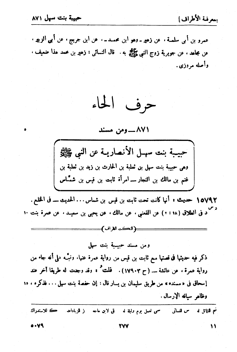 15792 -[د س] حديث: أنها كانت تحت ثابت بن قيس بن شماس ... الحديث - في الخلع د في الطلاق (18: 2) عن القعنبي، عن مالك، عن يحيى بن سعيد، عن عمرة بنت -[278]- عبد الرحمن بن سعد بن زرارة أنها أخبرته، عن حبيبة بنت سهل به. س فيه (الطلاق 34: 2) عن محمد بن سلمة، عن ابن القاسم، عن مالك به. رواه يزيد بن هارون، عن يحيى بن سعيد، عن عمرة أن حبيبة ورواه حماد بن زيد، عن يحيى بن سعيد قال كانت حبيبة - ولم يذكر عمرة ز رواه أبو عامر العقدي [د (الطلاق 18: 3) ] ، عن أبي عمرو السدوسي - وهو سعيد بن سلمة بن أبي الحسام، عن عبد الله بن أبي بكر، عن عمرة، عن عائشة وسيأتي - (ح 17903) .