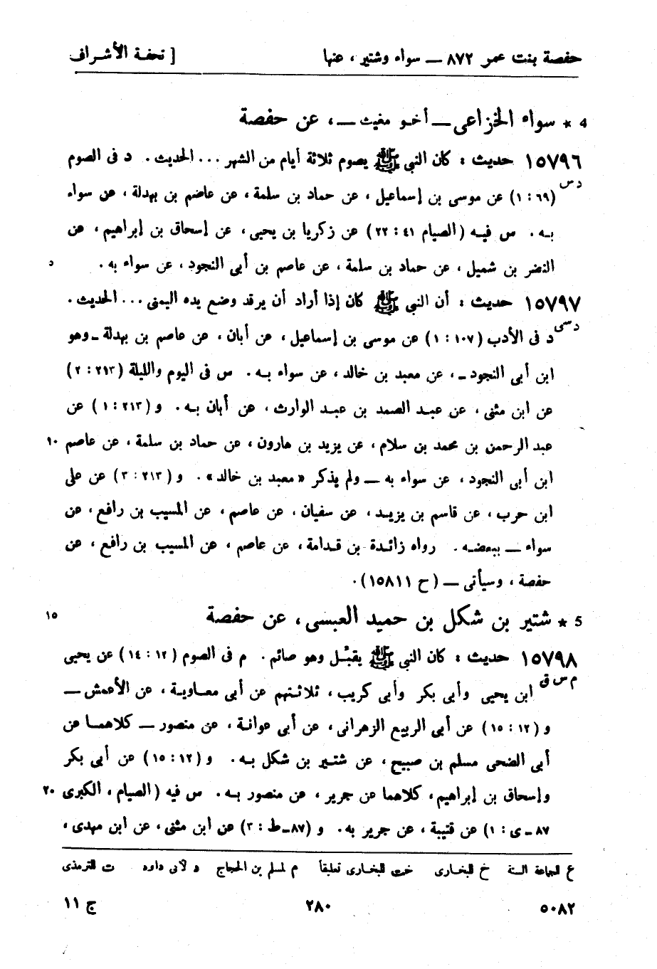 15797 -[د سي] حديث: أن النبي صَلَّى اللَّهُ عَلَيْهِ وَسَلَّمَ كان إذا أراد أن يرقد وضع يده اليمنى ... الحديث. د في الأدب (107: 1) عن موسى بن إسماعيل، عن أبان، عن عاصم ابن بهدلة - وهو ابن أبي النجود -، عن معبد بن خالد، عن سواء به. س في اليوم والليلة (213: 2) عن ابن مثنى، عن عبد الصمد بن عبد الوارث، عن أبان به. و (213: 1) عن عبد الرحمن بن محمد بن سلام، عن يزيد بن هارون، عن حماد بن سلمة، عن عاصم بن أبي النجود، عن سواء به - ولم يذكر معبد بن خالد و (213: 3) عن علي بن حرب، عن قاسم بن يزيد، عن سفيان، عن عاصم، عن المسيب بن رافع، عن سواء - ببعضه رواه زائدة بن قدامة، عن عاصم، عن المسيب بن رافع، عن حفصة وسيأتي - (ح 15811)