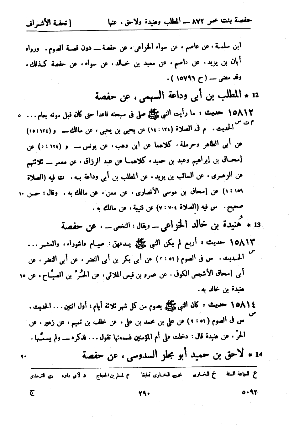 15814 -[س] حديث: كان النبي صَلَّى اللَّهُ عَلَيْهِ وَسَلَّمَ يصوم من كل شهر ثلاثة أيام: أول اثنتين ... الحديث. س في الصوم (51: 2) عن علي بن محمد بن علي، عن خلف بن تميم، عن زهير، عن الحرّ، عن هنيدة قال: دخلت على أم المؤمنين فسمعتها تقول ... فذكره - ولم يسمّها.