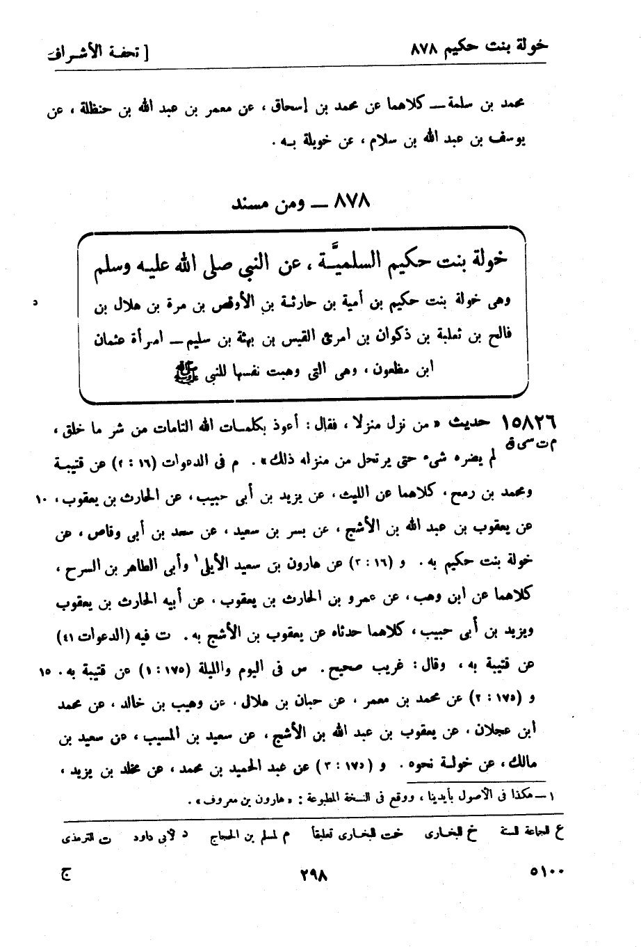 - ومن مسند خولة بنت حكيم السلميَّة عن النبي صَلَّى اللَّهُ عَلَيْهِ وَسَلَّمَ وهي خولة بنت حكيم بن أمية بن حارثة بن الأوقص بن مرة بن هلال بن فالح بن ثعلبة بن ذكوان بن امرئ القيس بن بهثة بن سليم - امرأة عثمان بن مظعون، وهي التي وهبت نفسها للنبي صَلَّى اللَّهُ عَلَيْهِ وَسَلَّمَ.