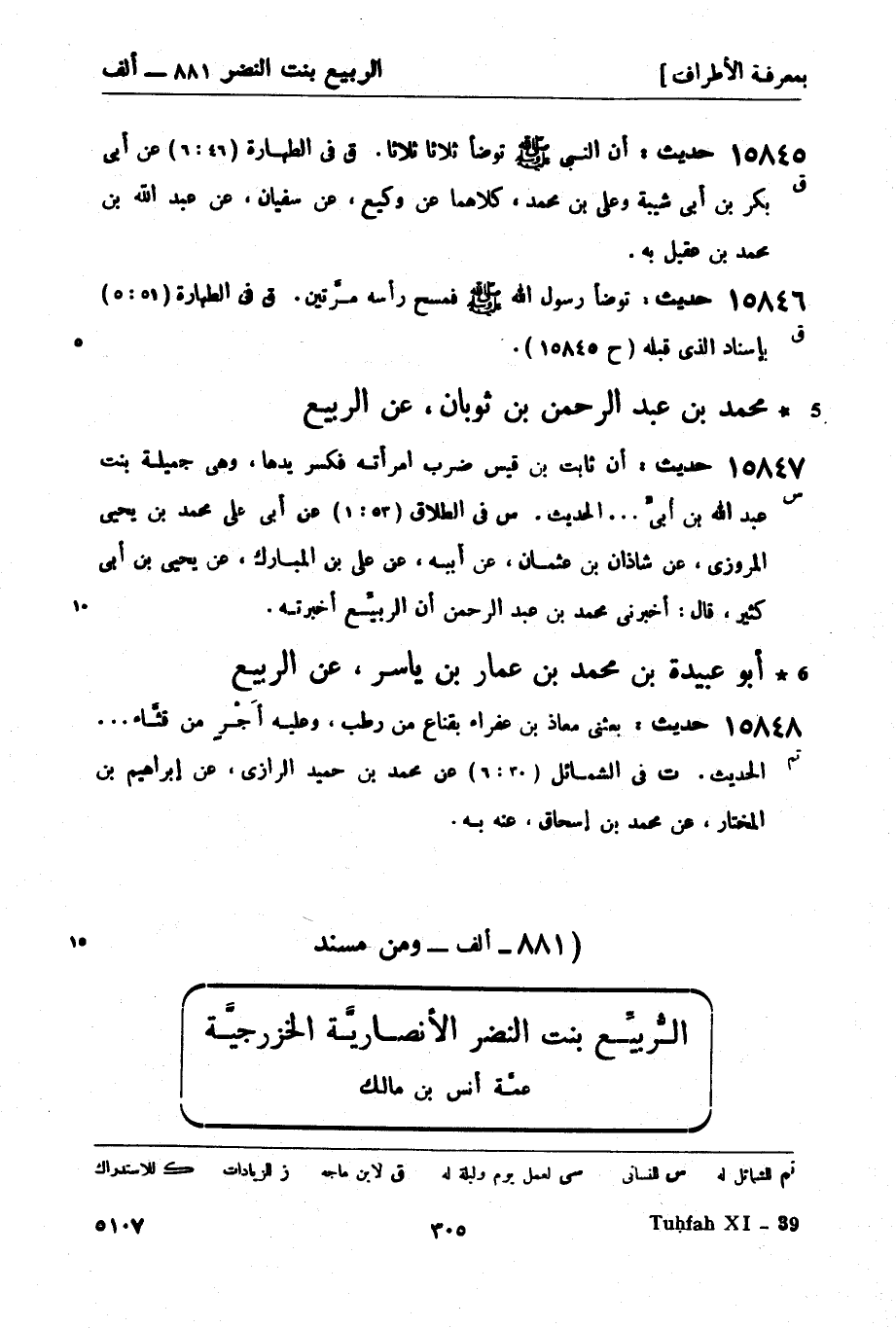(881 - ألف - ومن مسند الرُّبيِّع بنت النضر الأنصاريَّة الخزرجيَّة عمَّة أنس بن مالك.