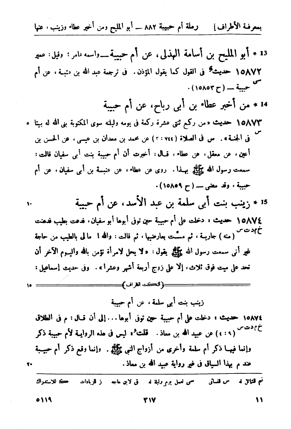 15872 - حديثٌ في القول كما يقول المؤذن. في ترجمة عبد الله بن عتبة، عن أم حبيبة - (ح 15853) .