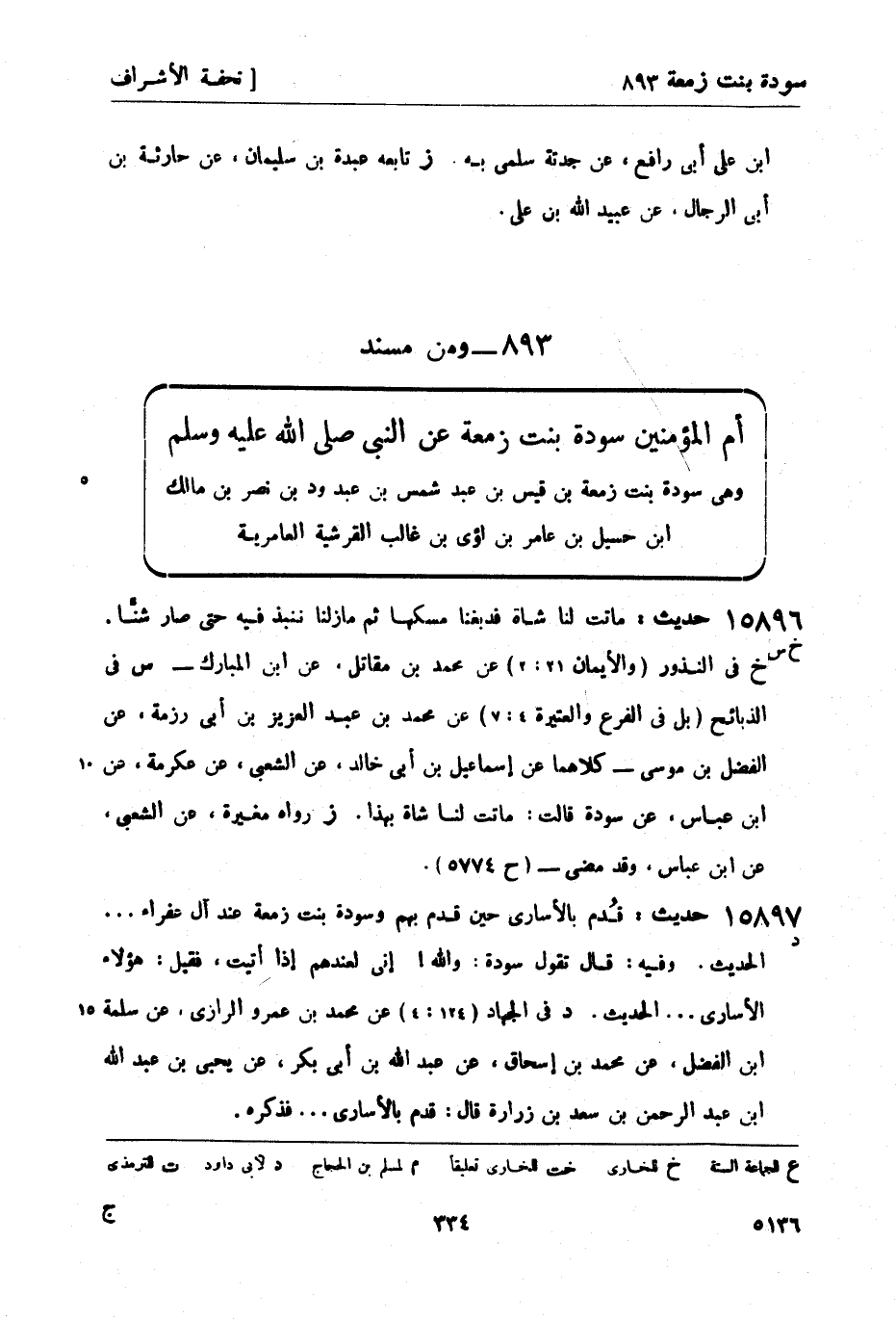 - ومن مسند أم المؤمنين سودة بنت زمعة عن النبي صَلَّى اللَّهُ عَلَيْهِ وَسَلَّمَ وهي سودة بنت زمعة بن قيس بن عبد شمس بن عبد ود بن نصر بن مالك بن حسيل بن عامر بن لؤي بن غالب القرشية العامرية.