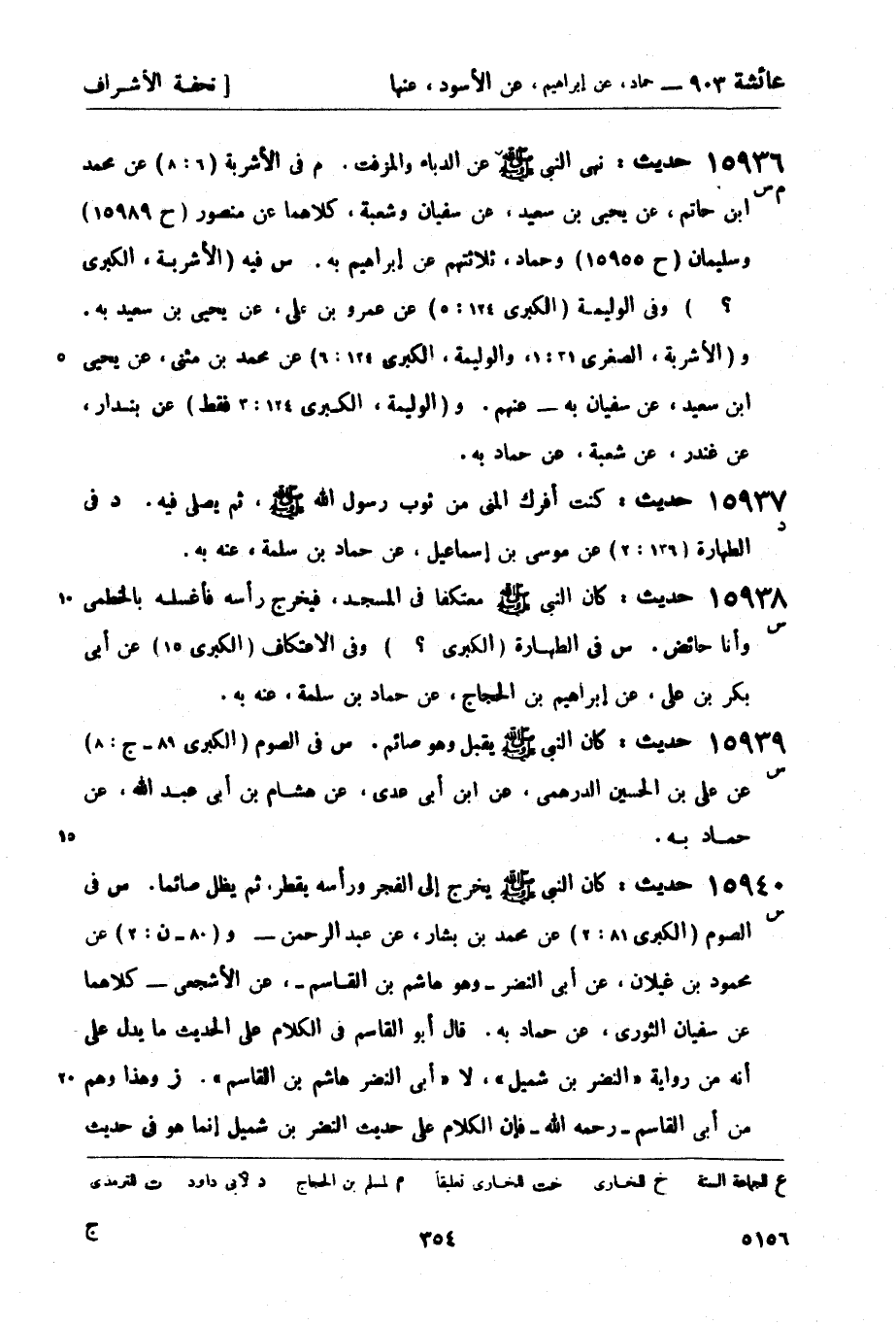 15936 -[م س] حديث: نهى النبي صَلَّى اللَّهُ عَلَيْهِ وَسَلَّمَ عن الدباء والمزفت. م في الأشربة (6: 8) عن محمد بن حاتم، عن يحيى بن سعيد، عن سفيان وشعبة، كلاهما عن منصور (ح 15989) وسليمان (ح 15955) وحماد، ثلاثتهم عن إبراهيم به. س فيه (الأشربة، الكبرى؟) وفي الوليمة (الكبرى 124: 5) عن عمرو بن علي، عن يحيى بن سعيد به. و (الأشربة، الصغرى 31: 1، والوليمة، الكبرى 124: 6) عن محمد بن مثنى، عن يحيى بن سعيد، عن سفيان به - عنهم. و (الوليمة، الكبرى 124: 3 فقط) عن بندار، عن غندر، عن شعبة، عن حماد به.
