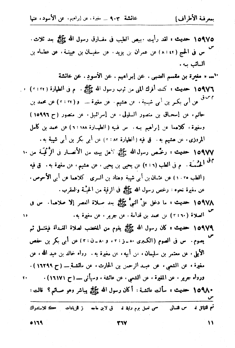15977 -[م ق] حديث: رخَّص رسول الله صَلَّى اللَّهُ عَلَيْهِ وَسَلَّمَ لأهل بيت من الأنصار في الرُّقْيَة من الحُمَة. م في الطب (6: 2) عن يحيى بن يحيى، عن هشيم، عن مغيرة به - ق فيه (الطب 35: 1) عن عثمان بن أبي شيبة وهناد بن السري، كلاهما عن أبي الأحوص، عن مغيرة نحوه: رخص رسول الله صَلَّى اللَّهُ عَلَيْهِ وَسَلَّمَ في الرقية من الحيَّة والعقرب.