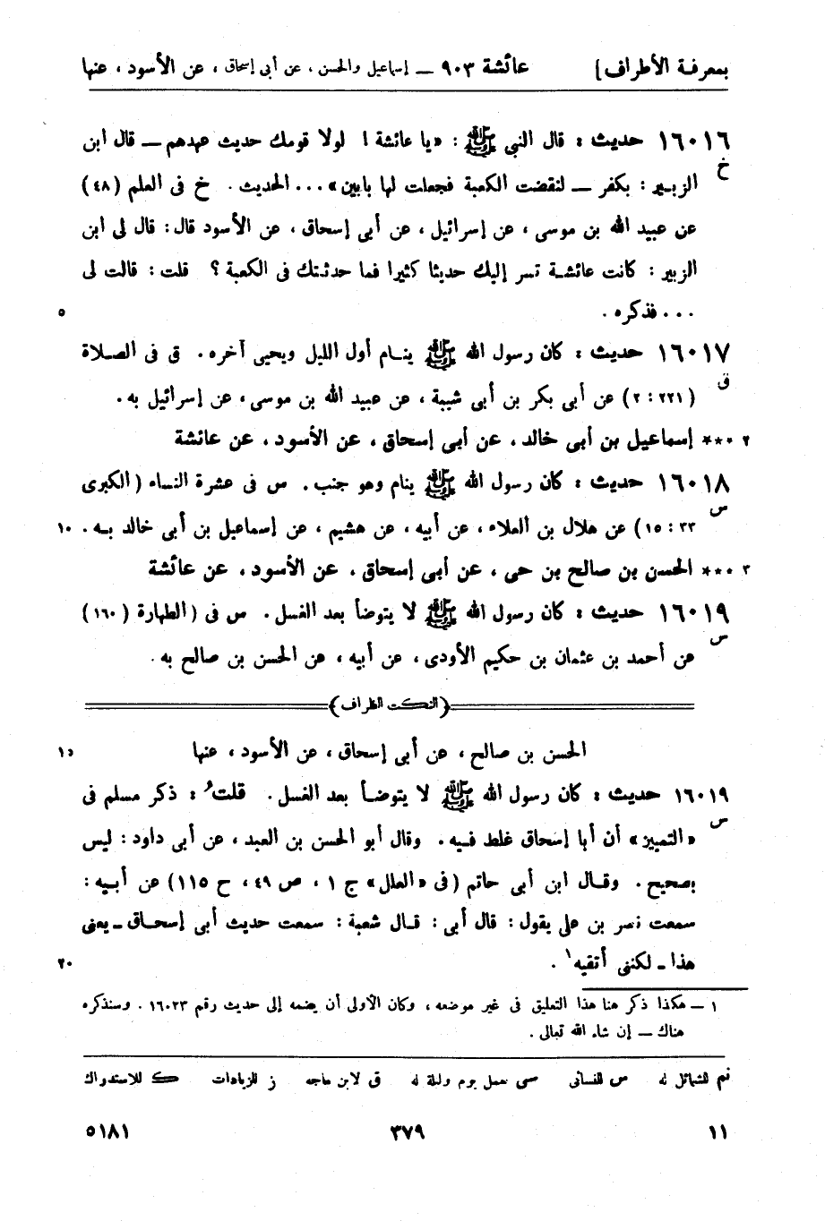 إسماعيل بن أبي خالد، عن أبي إسحاق، عن الأسود، عن عائشة.
