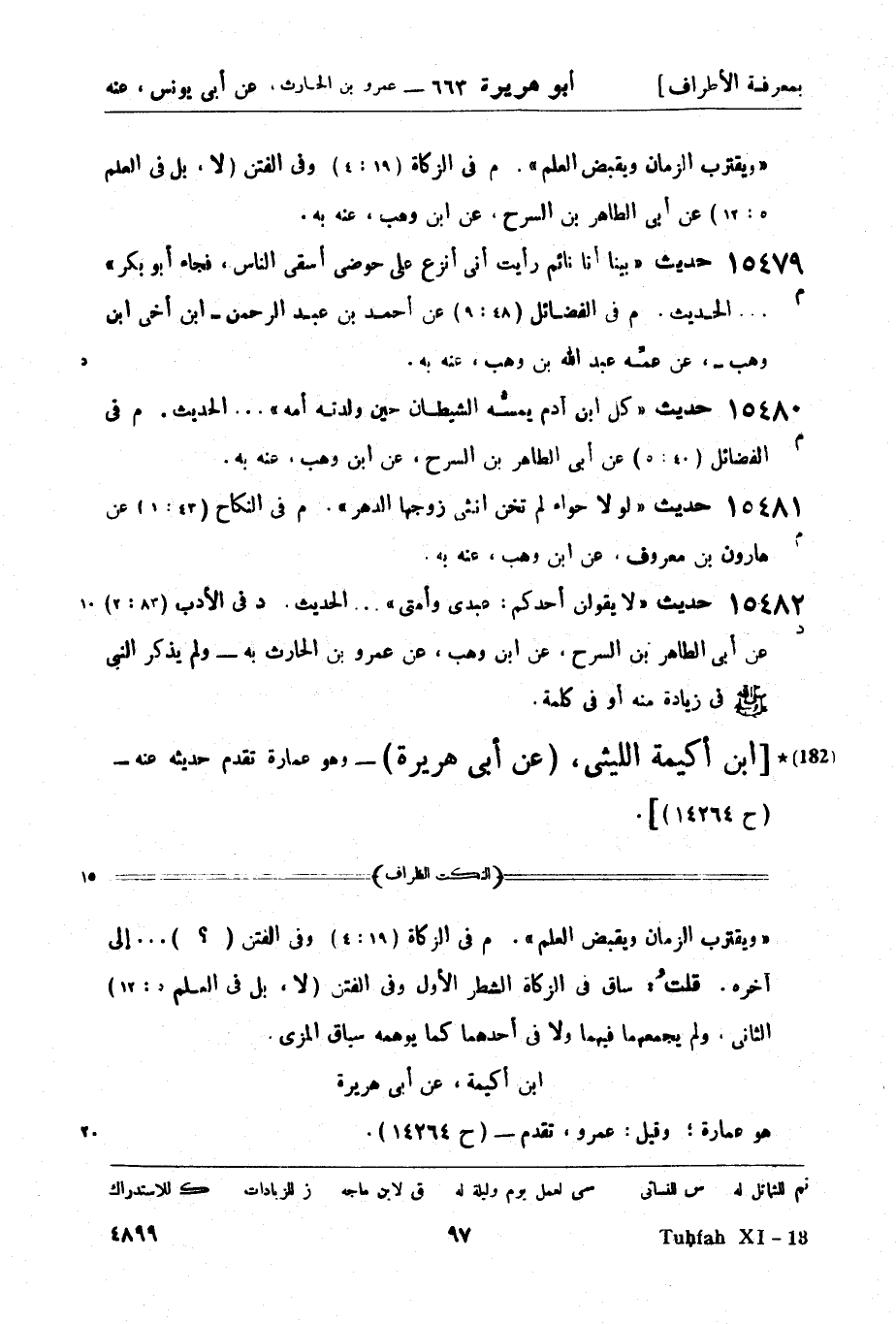 (182) [ابن أكيمة الليثي (عن أبي هريرة) - وهو عمارة تقدم حديثه عنه - (ح 14264) ]