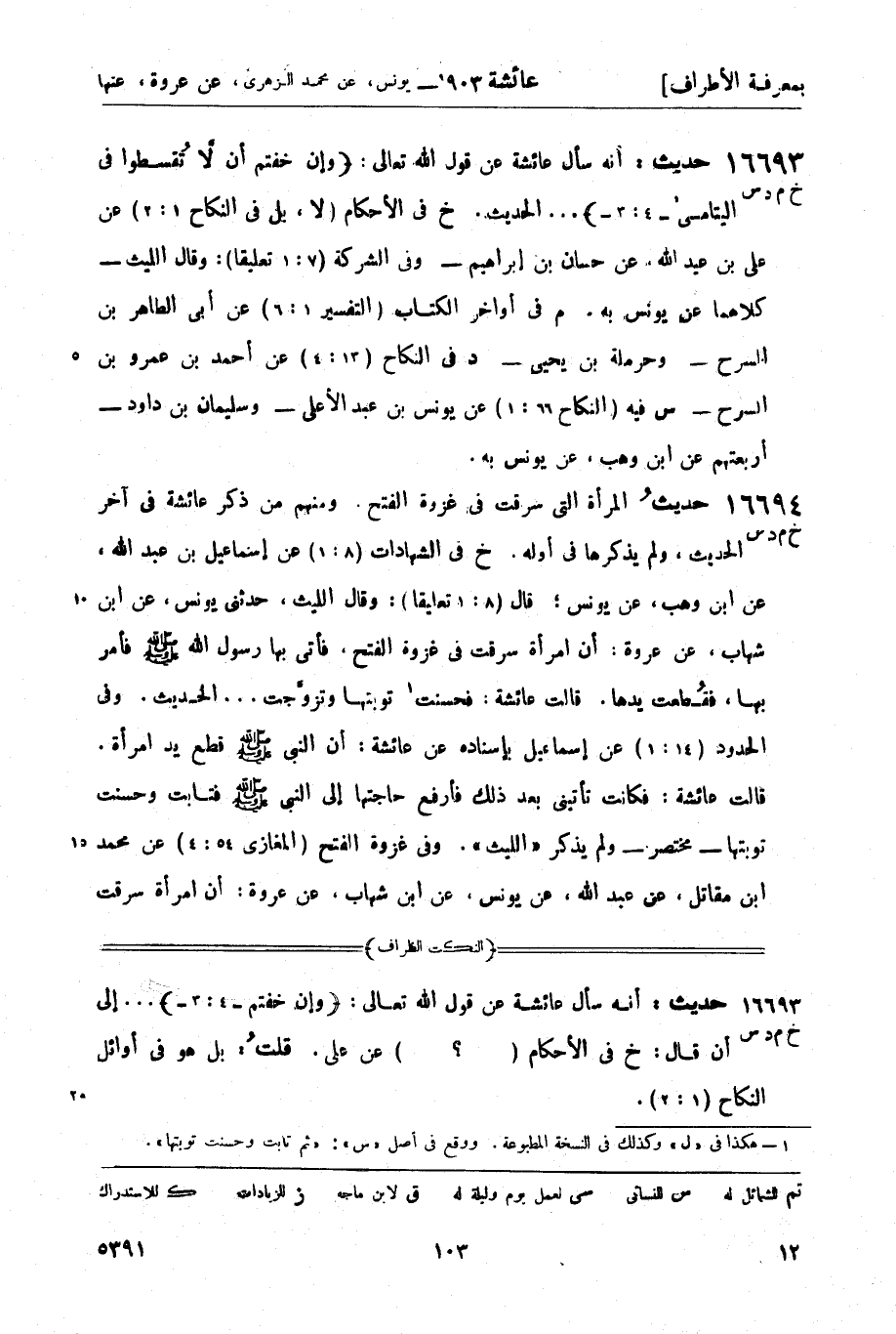 16694 -[خ م د س] حديث المرأة التي سرقت في غزوة الفتح. ومنهم من ذكر عائشة في آخر الحديث، ولم يذكرها في أوله.