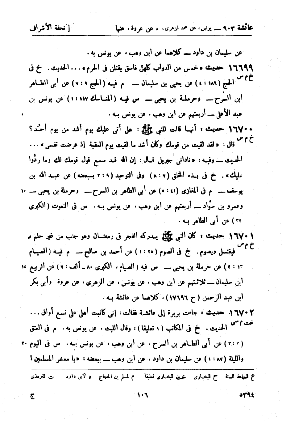 س فيه الصيام الكبرى 80 - ألف: 7) عن الربيع بن سليمان - ثلاثتهم عن ابن وهب، عن يونس، عن الزهري، عن عروة، وأبي بكر بن عبد الرحمن (ح 17696) ، كلاهما عن عائشة به.