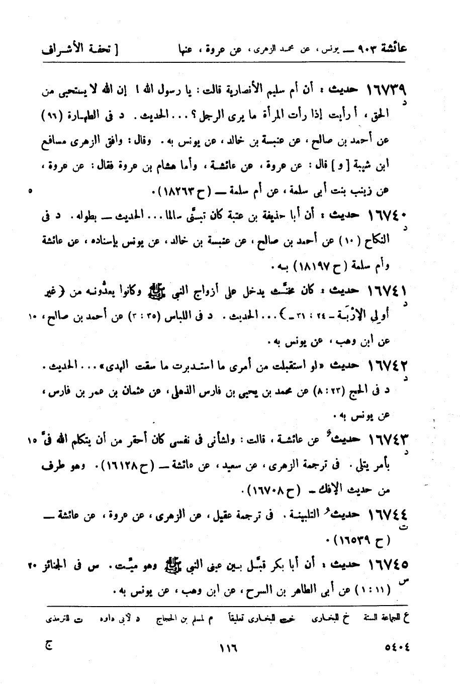 د في الطهارة (96) عن أحمد بن صالح، عن عنبسة بن خالد، عن يونس به. وقال: وافق الزهري مسافع بن شيبة [و] قال: عن عروة، عن عائشة، وأما هشام بن عروة فقال: عن عروة، عن زينب بنت أبي سلمة، عن أم سلمة - (ح 18263) .
