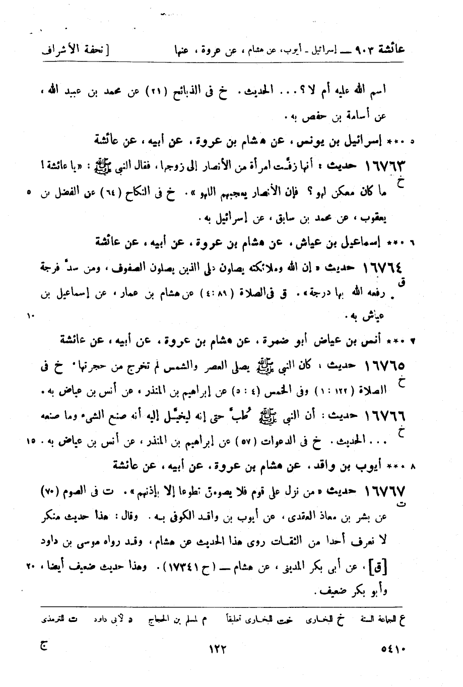 إسماعيل بن عياش، عن هشام بن عروة، عن أبيه، عن عائشة