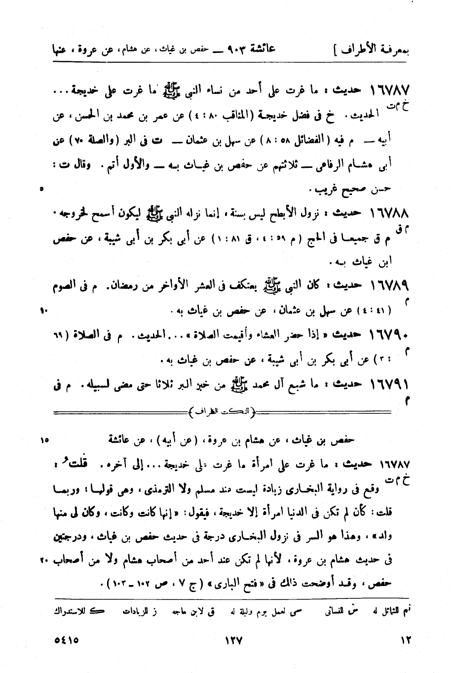 16788 -[خ م ت] : حديث ما غرت على أحد من نساء النبي صَلَّى اللَّهُ عَلَيْهِ وَسَلَّمَ ما غرت على خديجة ... الحديث.