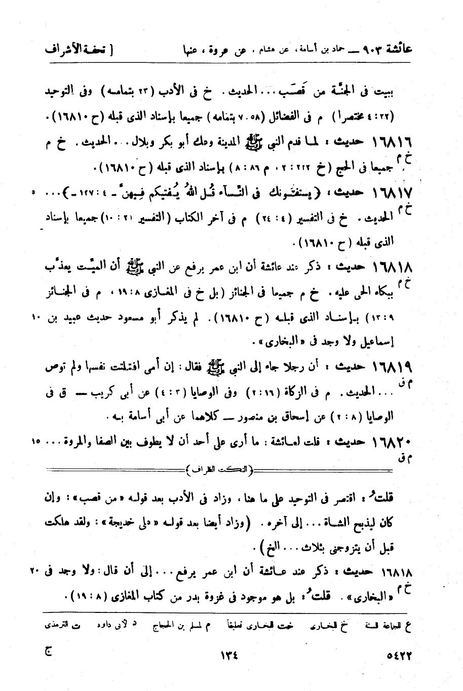 16818 -[خ م] حديث: ذكر عند عائشة أن ابن عمر يرفع عن النبي صَلَّى اللَّهُ عَلَيْهِ وَسَلَّمَ أن الميِّت يعذَّب ببكاء الحي عليه. (خ م) جميعاً في الجنائز (بل خ في المغازي 8: 19، م في الجنائز 9: 13) بإسناد الذي قبله (ح 16810) . لم يذكر أبو مسعود حديث عبيد بن إسماعيل ولا وجد في البخاري.