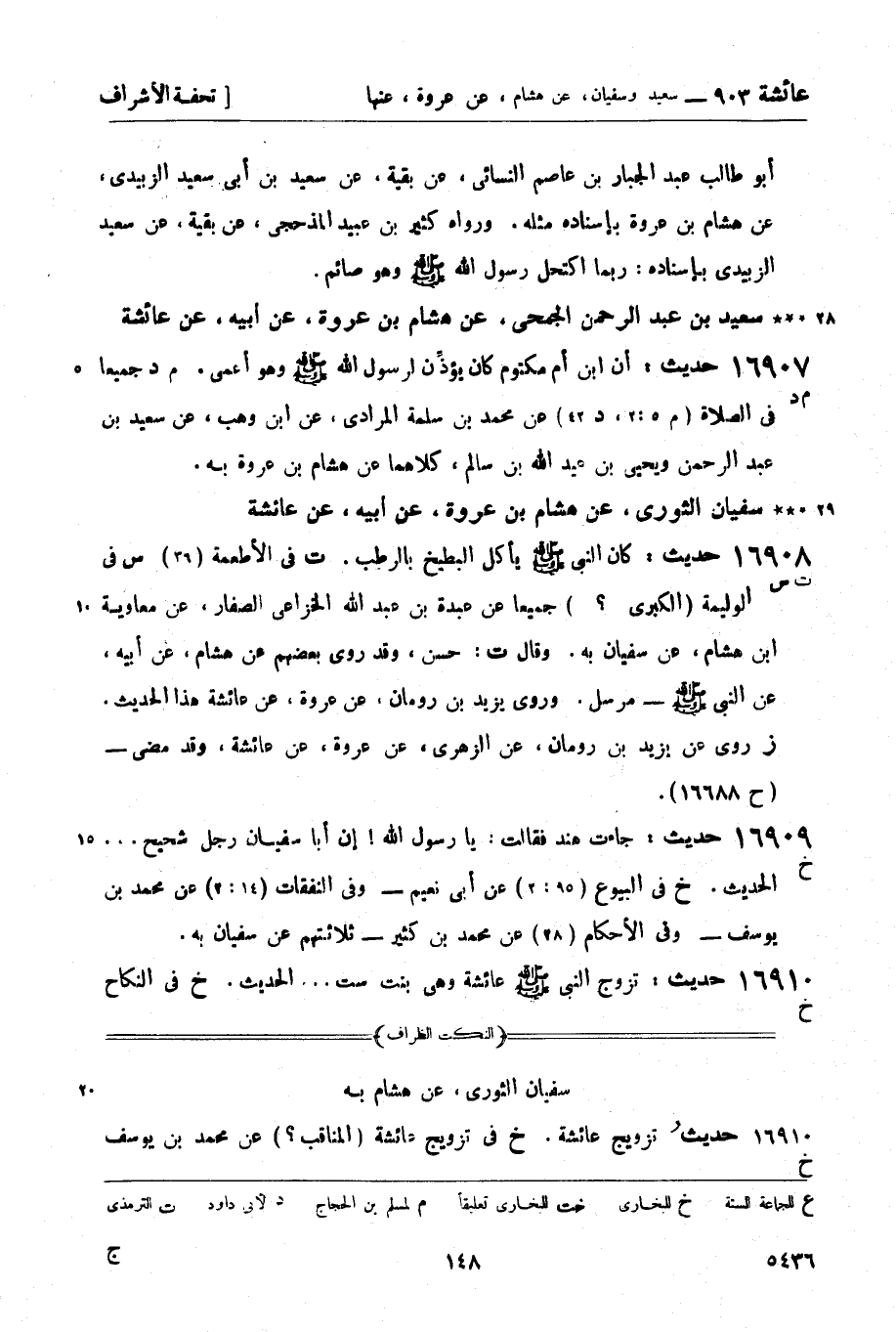 خ في النكاح -[149]- (60) عن قبيصة، عن سفيان، عن هشام، عن أبيه قال: تزوج ... فذكره. وفيه (النكاح 39) وفي تزويج عائشة (المناقب؟) عن محمد بن يوسف، عن سفيان، عن هشام، عن أبيه، عن عائشة: أن النبي صَلَّى اللَّهُ عَلَيْهِ وَسَلَّمَ تزوجها ... الحديث.