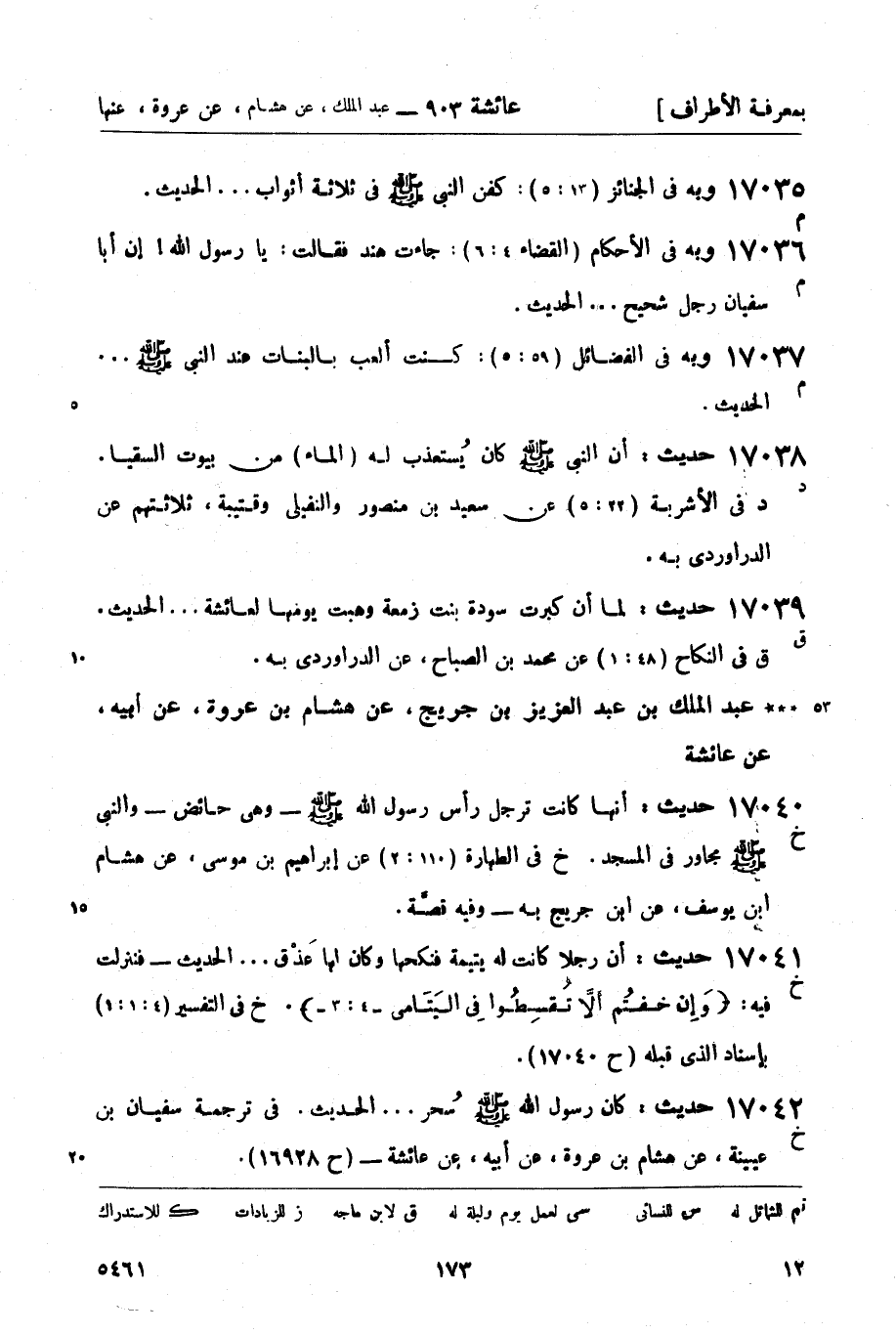 عبد الملك بن عبد العزيز بن جريج، عن هشام بن عروة، عن أبيه، عن عائشة