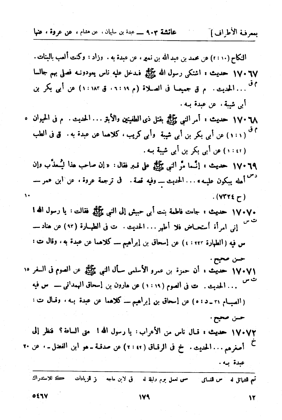 17070 -[ت س] حديث: جاءت فاطمة بنت أبي حبيش إلى النبي صَلَّى اللَّهُ عَلَيْهِ وَسَلَّمَ فقالت: يا رسول الله! إني امرأة أستحاض فلا أطهر ... الحديث.