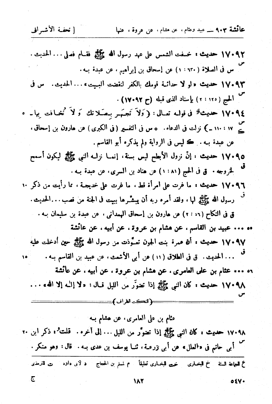 عثام بن علي العامري، عن هشام بن عروة، عن أبيه، عن عائشة
