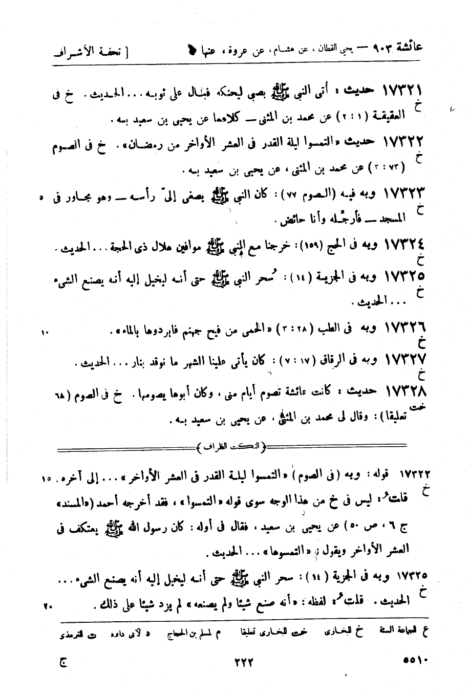 17323 - وبه فيه (الصوم 77) : كان النبي صَلَّى اللَّهُ عَلَيْهِ وَسَلَّمَ يصغي إليّ رأسه - وهو مجاور في المسجد - فأرجِّله وأنا حائض.