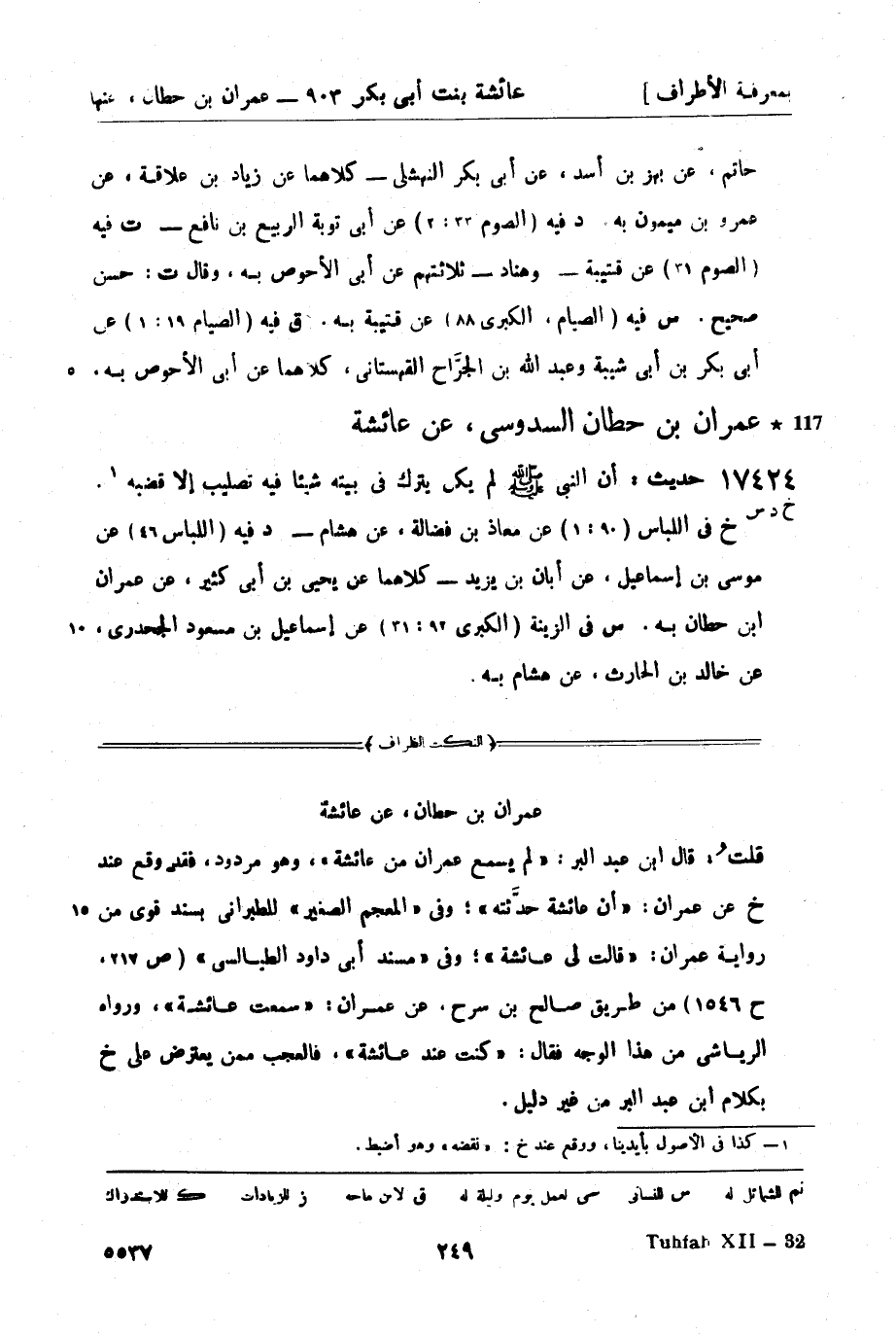 17424 - حديث: أن النبي صَلَّى اللَّهُ عَلَيْهِ وَسَلَّمَ لم يكن يترك في بيته شيئاً فيه تصليب إلا قضبه1.