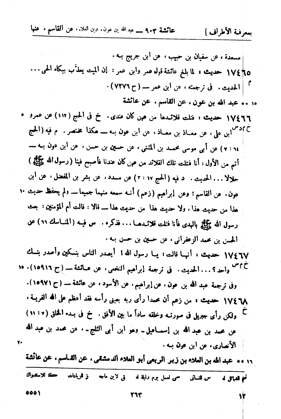 17467 -[خ م س] حديث: أنها قالت: يا رسول الله! أيصدر الناس بنسكين وأصدر بنسك واحد؟ ... الحديث. في ترجمة إبراهيم النخعي، عن عائشة - (ح 15916) . وفي ترجمة عبد الله بن عون، عن إبراهيم، عن الأسود، عن عائشة - (ح 15971) .