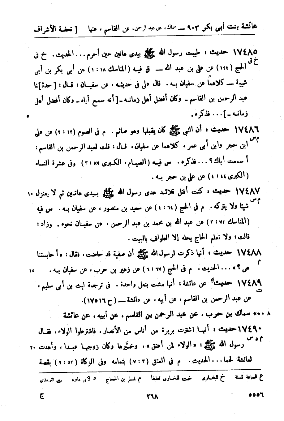 17486 -[م س] حديث: أن النبي صَلَّى اللَّهُ عَلَيْهِ وَسَلَّمَ كان يقبلها وهو صائم. م في الصوم (12: 2) عن علي بن حجر وابن أبي عمر، كلاهما عن سفيان، قال: قلت لعبد الرحمن بن القاسم: أسمعت أباك؟ ... فذكره. س فيه (الصيام، الكبرى 87: 3) وفي عشرة النساء (الكبرى 44: 4) عن علي بن حجر به.