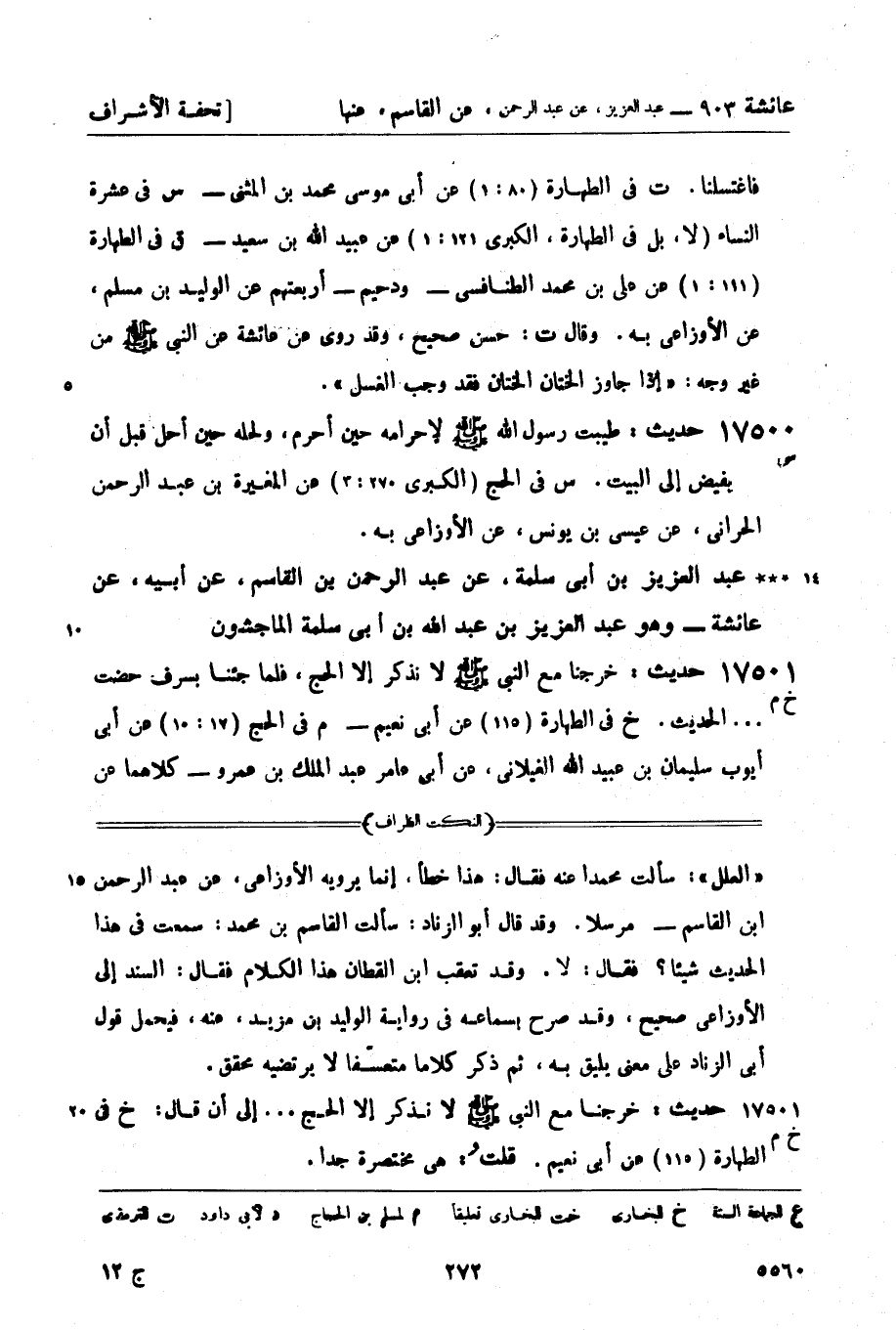 17500 -[سي] حديث: طيبت رسول الله صَلَّى اللَّهُ عَلَيْهِ وَسَلَّمَ لإحرامه حين أحرم، ولحله حين أحل قبل أن يفيض إلى البيت. س في الحج (الكبرى 270: 3) عن المغيرة بن عبد الرحمن الحراني، عن عيسى بن يونس، عن الأوزاعي به.
