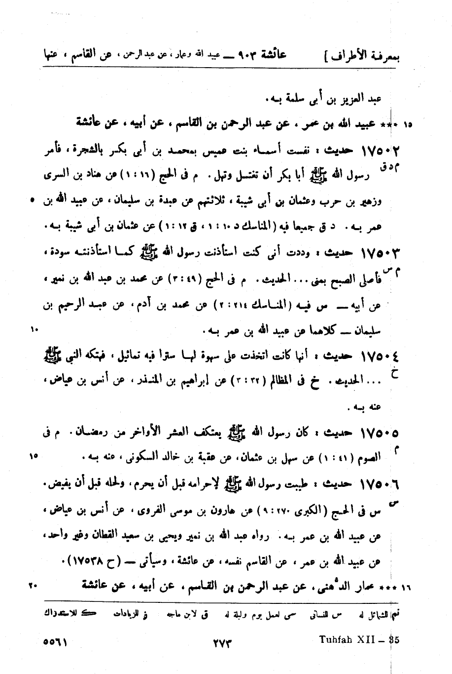 17506 -[س] حديث: طيبت رسول الله صَلَّى اللَّهُ عَلَيْهِ وَسَلَّمَ لإحرامه قبل أن يحرم، ولحله قبل أن يفيض. س في الحج (الكبرى 270: 9) عن هارون بن موسى الفروي، عن أنس بن عياض، عن عبيد الله بن عمر به. رواه عبد الله بن نمير ويحيى بن سعيد القطان وغير واحد، عن عبيد الله بن عمر، عن القاسم نفسه، عن عائشة، وسيأتي - (ح 17538) .