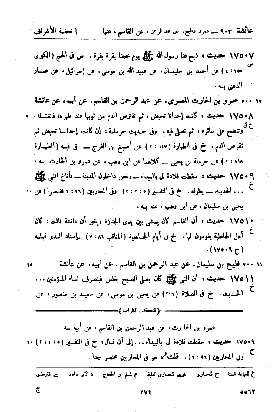 عمرو بن الحارث المصري، عن عبد الرحمن بن القاسم، عن أبيه، عن عائشة