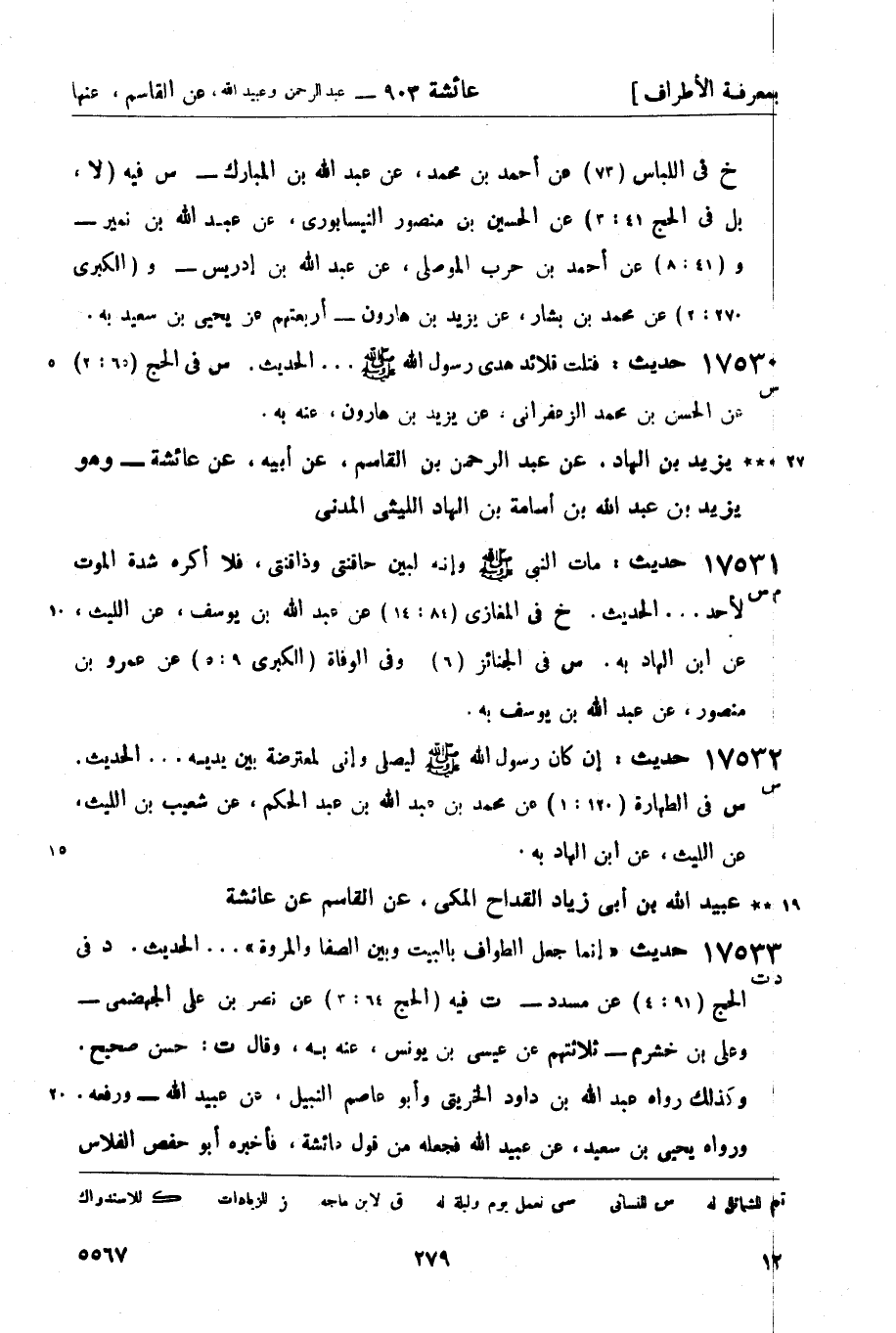 17531 -[س] حديث: مات النبي صَلَّى اللَّهُ عَلَيْهِ وَسَلَّمَ وإنه لبين حاقنتي وذاقنتي، فلا أكره شدة الموت لأحد ... الحديث. خ في المغازي (84: 14) عن عبد الله بن يوسف، عن الليث، عن ابن الهاد به. س في الجنائز (6) وفي الوفاة (الكبرى 9: 5) عن عمرو بن منصور، عن عبد الله بن يوسف به.