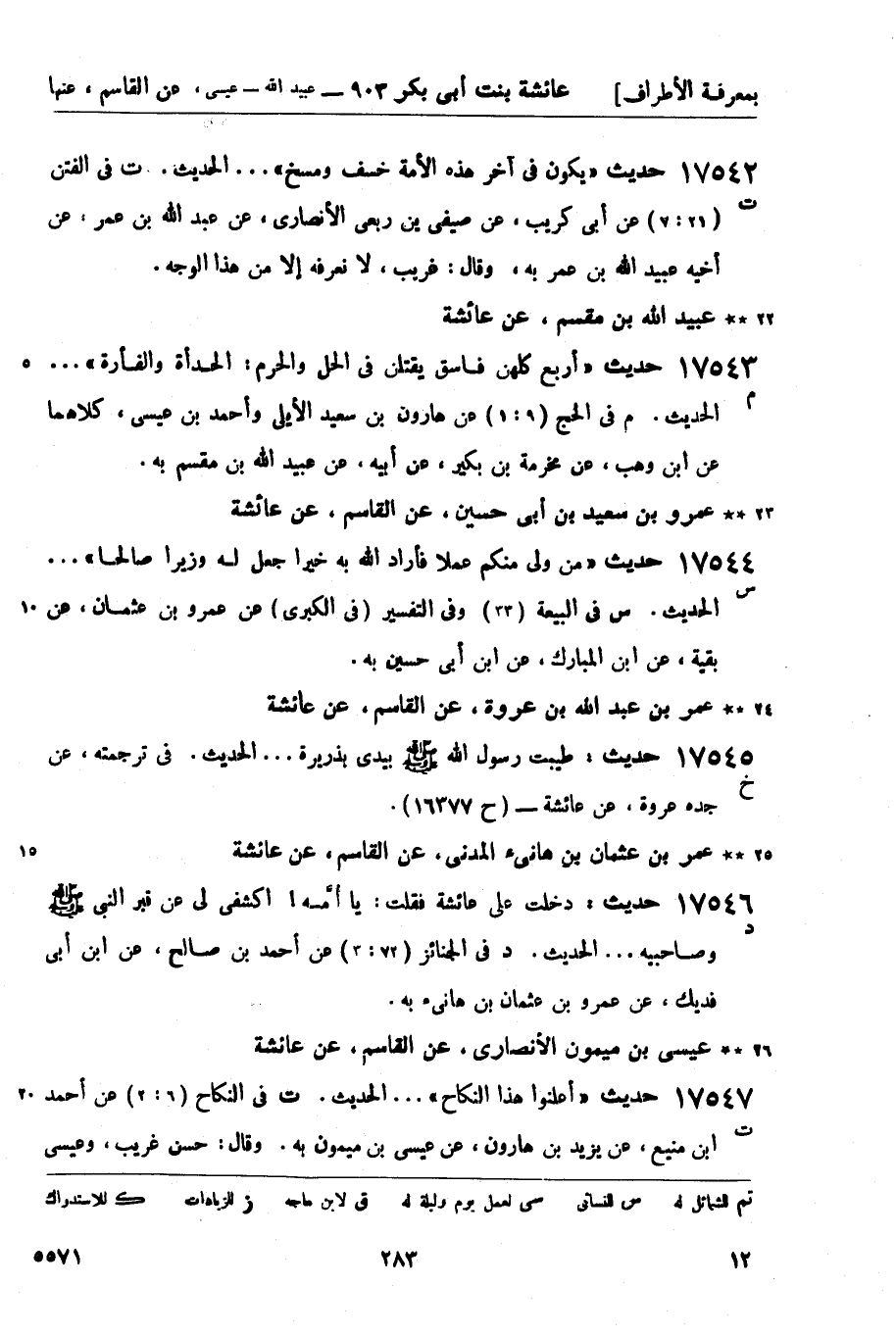 17542 -[ت] حديث يكون في آخر هذه الأمة خسف ومسخ ... الحديث. ت في الفتن (21: 7) عن أبي كريب، عن صيفي بن ربعي الأنصاري، عن عبد الله بن عمر، عن أخيه عبيد الله بن عمر به، وقال: غريب، لا نعرفه إلا من هذا الوجه.