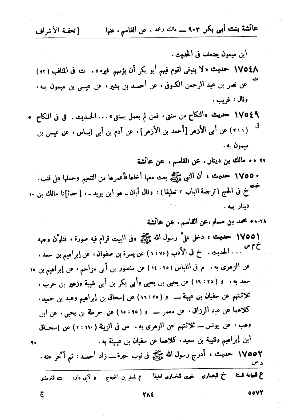 17552 -[د س] حديث: أدرج رسول الله صَلَّى اللَّهُ عَلَيْهِ وَسَلَّمَ في ثوب حبرة - زاد أحمد: ثم أخَّر عنه. -[285]- د في الجنائز (34: 2) عن أحمد بن حنبل - ك س في الوفاة (الكبرى 15: 3) عن محمد بن المثنى - و (15: 3) مجاهد بن موسى - فرقهما - ثلاثتهم عن الوليد بن مسلم، عن الأوزاعي، عن الزهري به. ك حديث س ليس في الرواية ولم يذكره أبو القاسم.