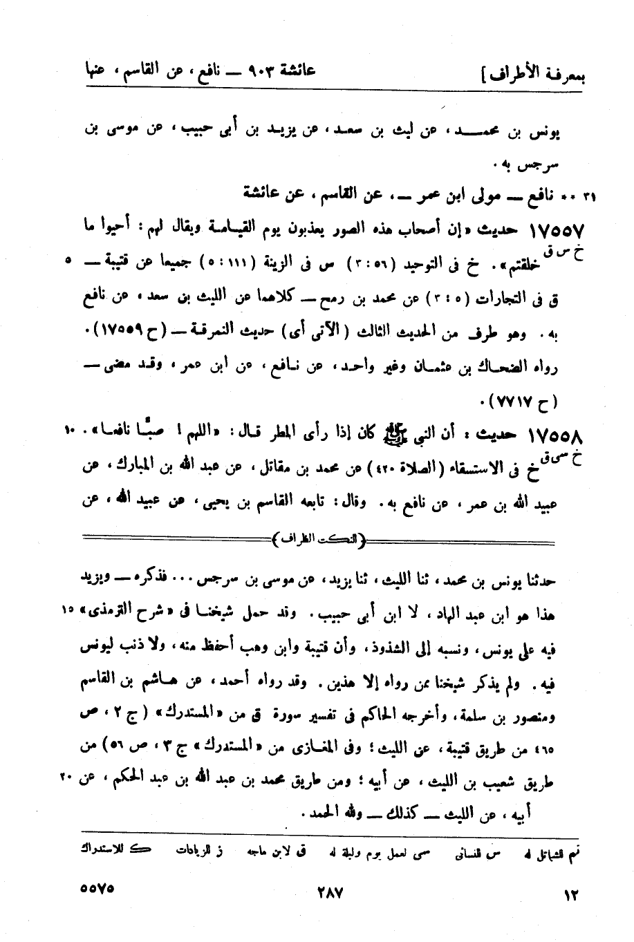 نافع - مولى ابن عمر -، عن القاسم، عن عائشة