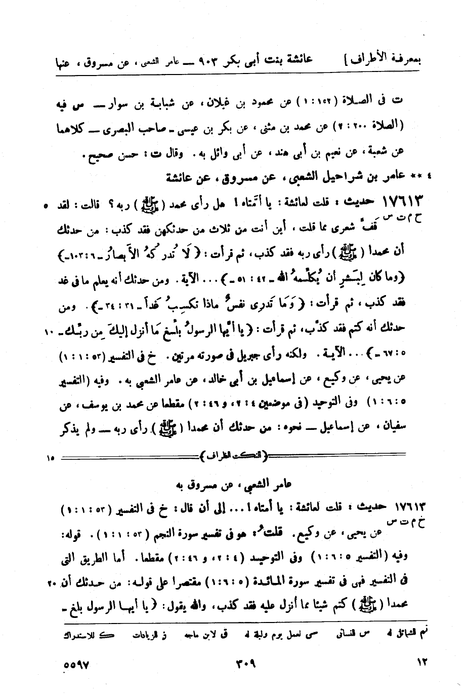 عامر بن شراحيل الشعبي، عن مسروق، عن عائشة