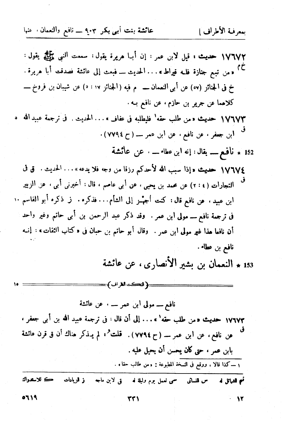 نافع - مولى عبد الله بن عمر -، عن عائشة