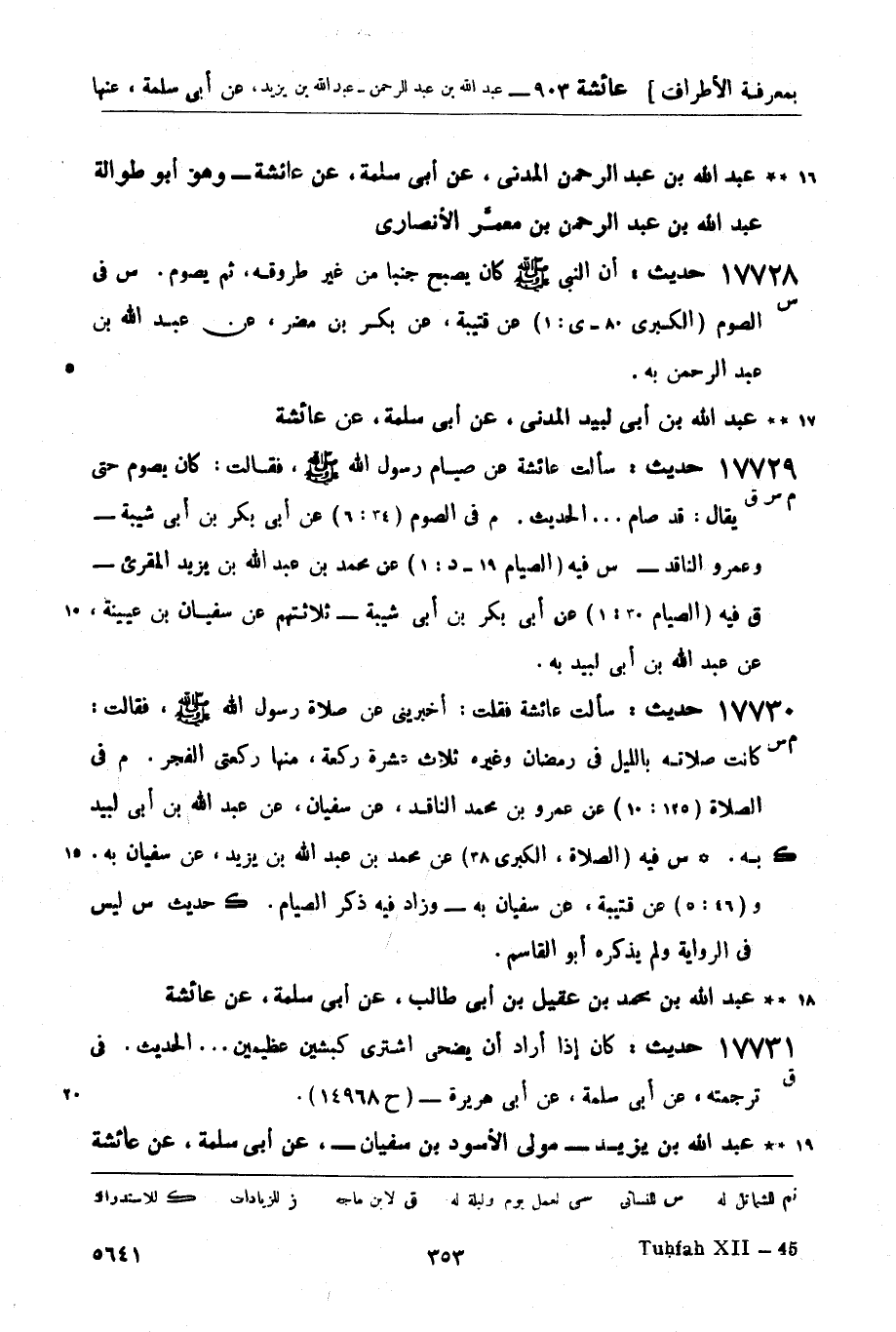 17728 -[س] حديث: أن النبي صَلَّى اللَّهُ عَلَيْهِ وَسَلَّمَ كان يصبح جنباً من غير طروقه، ثم يصوم. س في الصوم (الكبرى 80 - ى: 1) عن قتيبة، عن بكر بن مضر، عن عبد الله بن عبد الرحمن به.