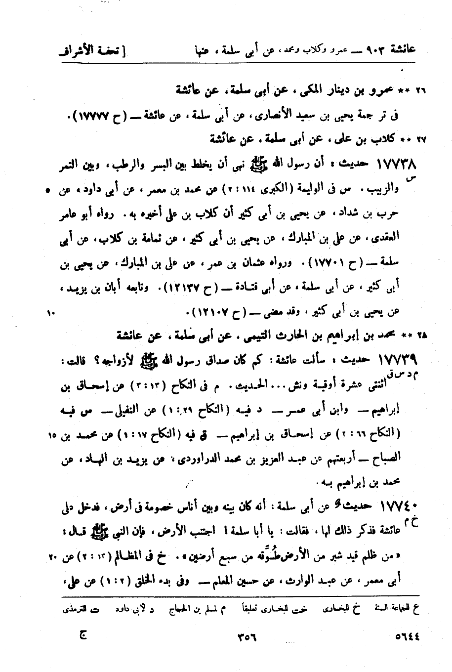 عمرو بن دينار المكي، عن أبي سلمة، عن عائشة في ترجمة يحيى بن سعيد الأنصاري، عن أبي سلمة، عن عائشة - (ح 17777) .