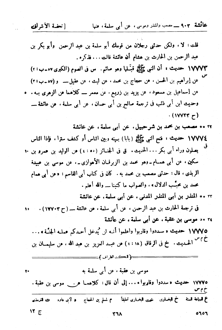 المنذر بن أبي المنذر المدني، عن أبي سلمة، عن عائشة في ترجمة الحارث بن عبد الرحمن، عن أبي سلمة، عن عائشة - (ح 17703) .