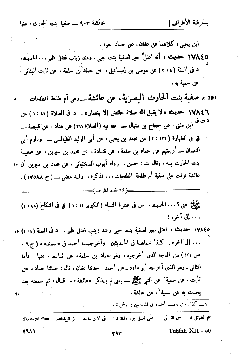 17846 -[د ت ق] حديث لا يقبل الله صلاة حائض إلا بخمار. د في الصلاة (86: 1) عن ابن مثنى، عن حجاج بن منهال - ت فيه (الصلاة 161) عن هناد، عن قبيصة - ق في الطهارة (132: 2) عن محمد بن يحيى، عن أبي الوليد الطيالسي - وعارم أبي النعمان - أربعتهم عن حماد بن سلمة، عن قتادة، عن محمد بن سيرين، عن صفية بنت الحارث به، وقال ت: حسن. رواه أيوب السختياني، عن محمد بن سيرين أن عائشة نزلت على صفية أم طلحة الطلحات ... فذكره، وقد مضى - (ح 17588) .