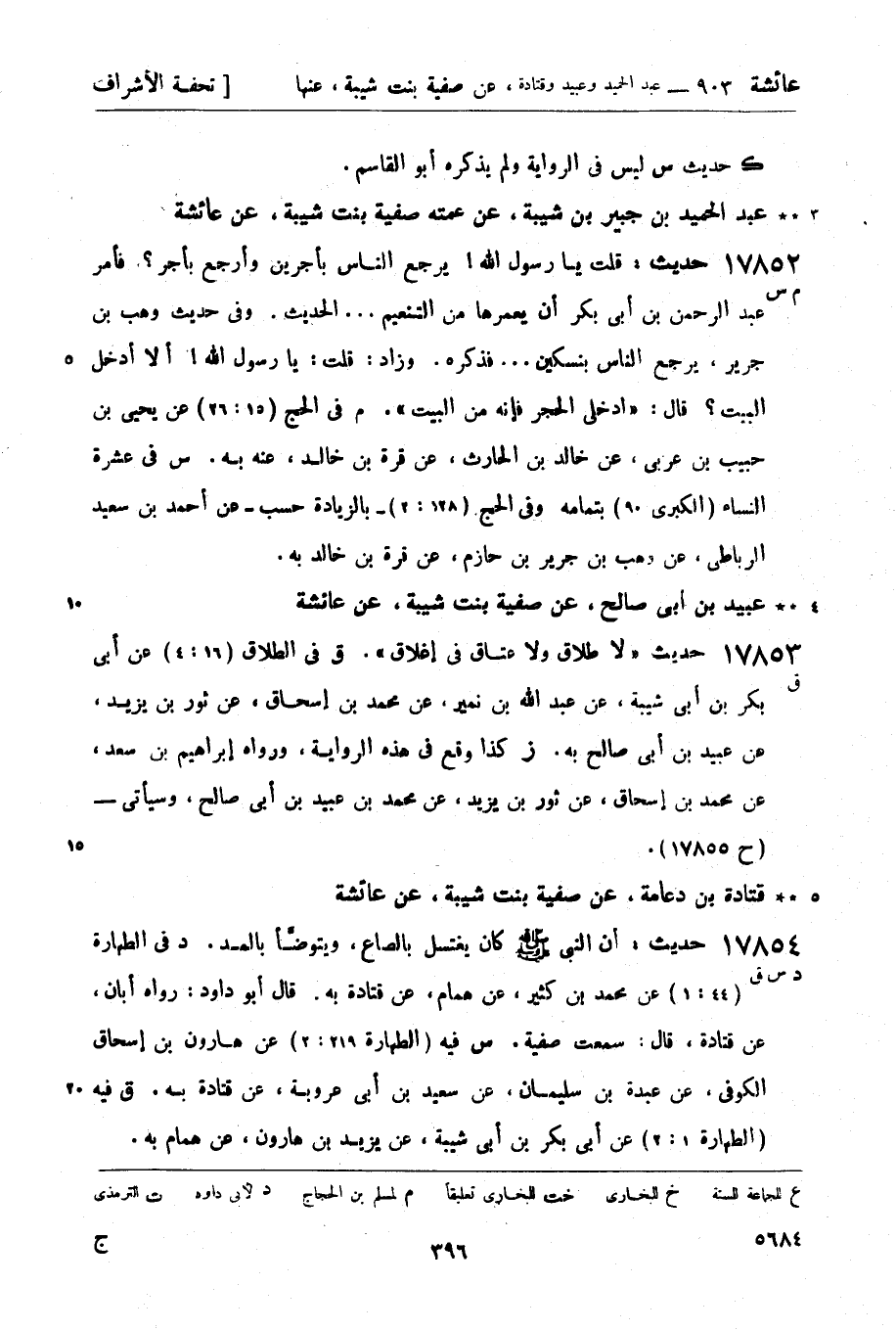 عبد الحميد بن جبير بن شيبة، عن عمته صفية بنت شيبة، عن عائشة