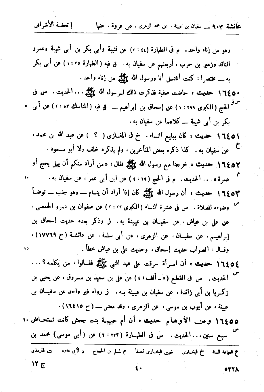 16455 -[س] ومن الأوهام حديث: أن أم حبيبة بنت جحش كانت تستحاض سبع سنين ... الحديث. س في الطهارة (223: 2) عن (أبي موسى) محمد بن -[41]- المثنى1، عن سفيان به. (ز) هكذا ذكره أبو القاسم في هذه الترجمة ولم يذكره في ترجمة عمرة، عن عائشة - (ح 17922) - وهو في عامة الأصول من النسائي: عن عمرة لا عن عروة - والله أعلم. وكذلك رواه مسلم، عن محمد بن المثنى، وسيأتي - (ح 17922) .