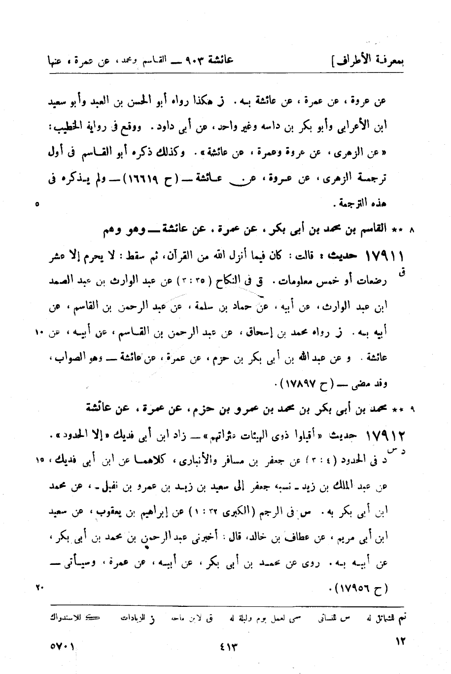 محمد بن أبي بكر بن محمد بن عمرو بن حزم، عن عمرة، عن عائشة
