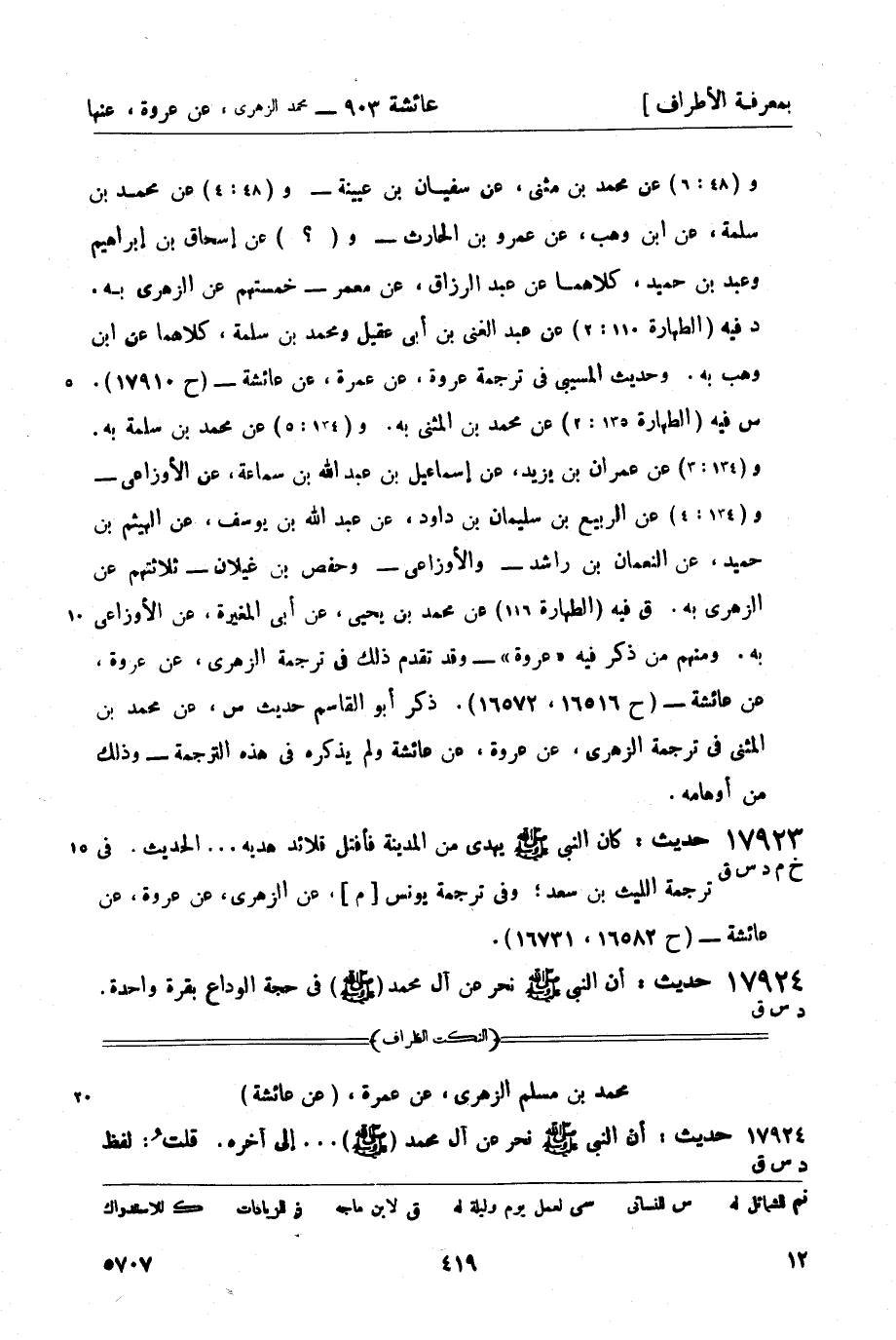 17923 -[خ م د س ق] حديث: كان النبي صَلَّى اللَّهُ عَلَيْهِ وَسَلَّمَ يهدي من المدينة فأقتل قلائد هديه ... الحديث. في ترجمة الليث بن سعد؛ وفي ترجمة يونس [م] عن الزهري، عن عروة، عن عائشة - (ح 16582، 16731) .