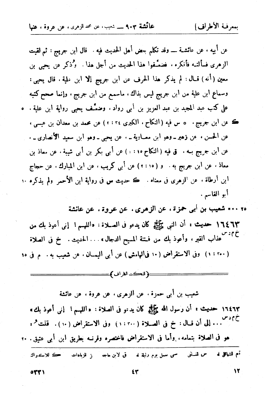 16463 -[خ م د س] حديث: أن النبي صَلَّى اللَّهُ عَلَيْهِ وَسَلَّمَ كان يدعو في الصلاة: اللهم! إني أعوذ بك من عذاب القبر، وأعوذ بك من فتنة المسيح الدجال ... الحديث. خ في الصلاة (300: 1) وفي الاستقراض (10 في الهامش) عن أبي اليمان، عن شعيب به. م في -[44]- الصلاة (78: 3) عن أبي بكر بن إسحاق الصاغاني، عن أبي اليمان به. د س جميعا فيه (الصلاة د 154: 1) عن عمرو بن عثمان، عن بقية - (س - 517: 2 - عن عمرو بن عثمان، عن أبيه - كلاهما) عن شعيب به.