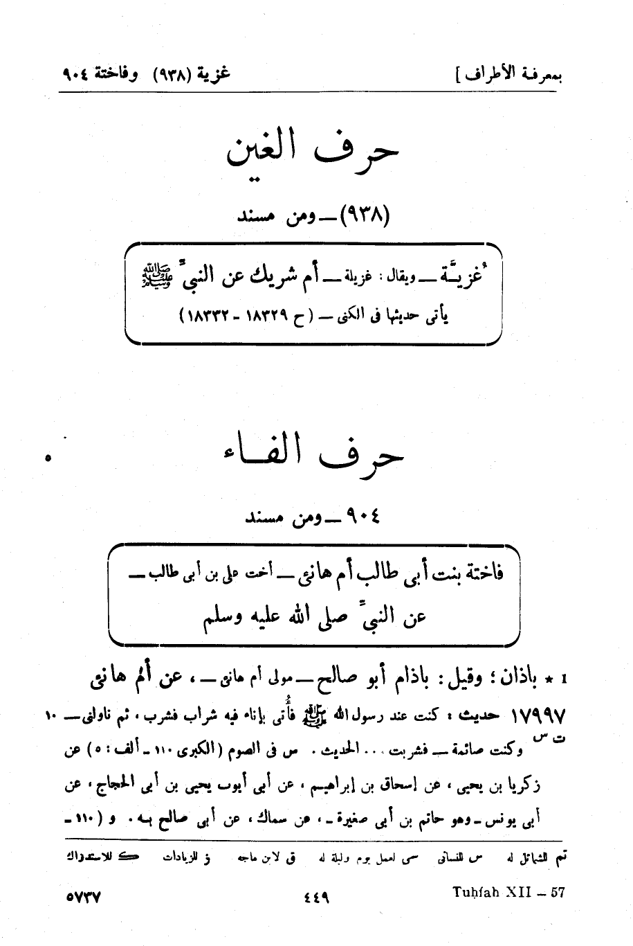 ومن مسند فاختة بنت أبي طالب أم هانئ - أخت علي بن أبي طالب - عن النبيِّ صَلَّى اللَّهُ عَلَيْهِ وَسَلَّمَ