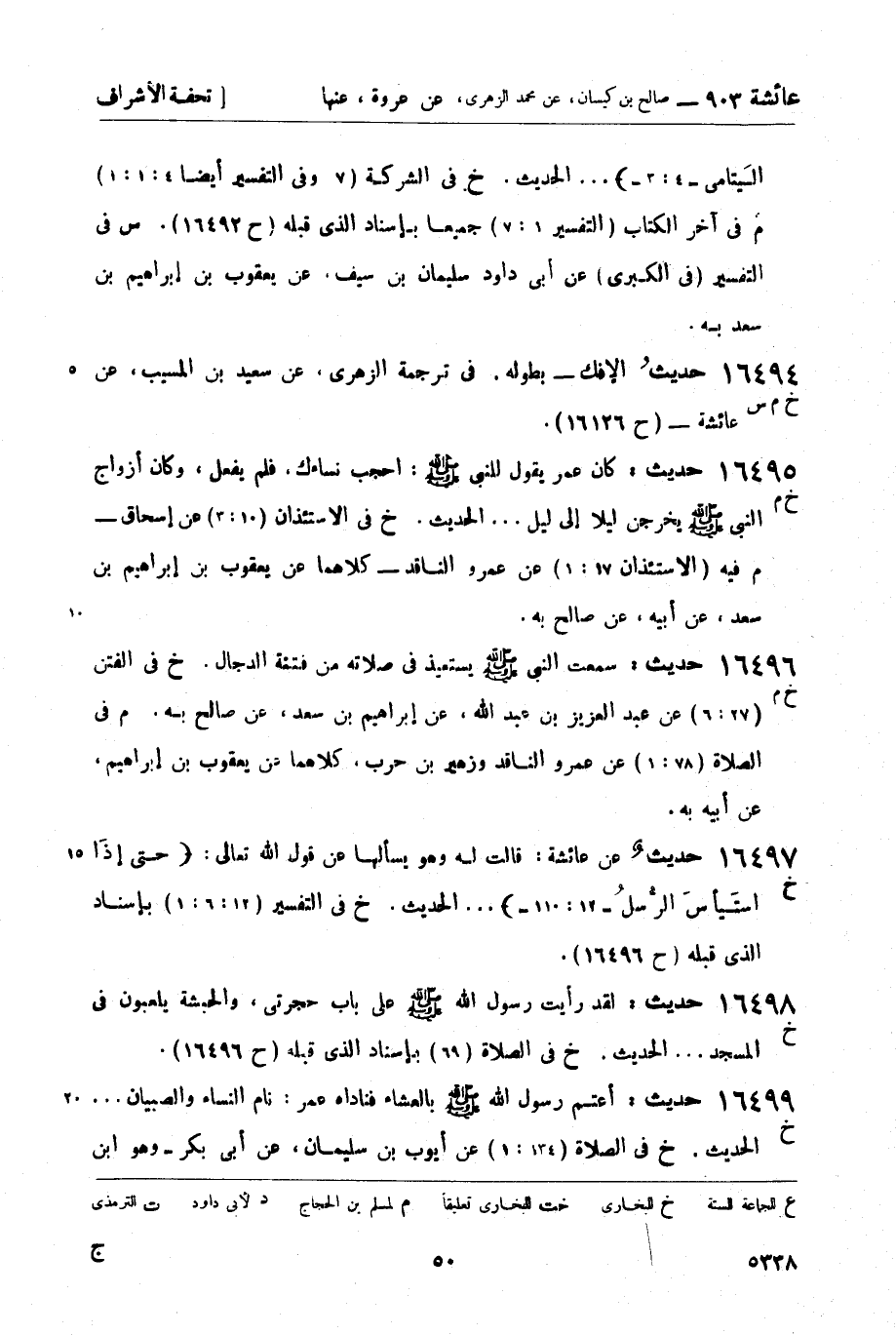 16494 - حديث الإفك - بطوله. في ترجمة الزهري، عن سعيد بن المسيب، عن عائشة - (ح 16126) .
