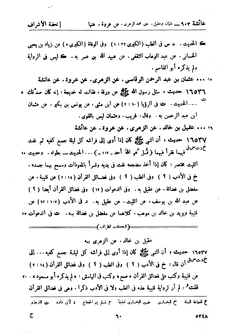 خ في الأدب (؟) وفي الطب (؟) وفي فضائل القرآن (14: 2) عن قتيبة، عن مفضل بن فضالة، عن عقيل به. وفي الدعوات (12) وفي فضائل القرآن أيضاً (؟) عن عبد الله بن يوسف، عن الليث، عن عقيل به.