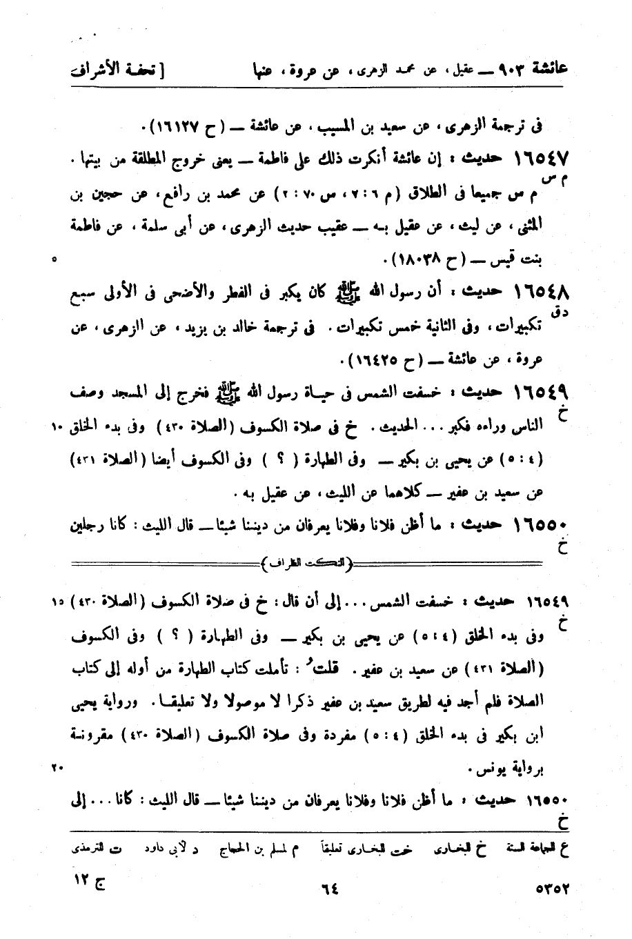 خ في صلاة الكسوف (الصلاة 430) وفي بدء الخلق (4: 5) عن يحيى بن بكير - وفي الطهارة (؟) وفي الكسوف أيضاً (الصلاة 431) عن سعيد بن عفير - كلاهما عن الليث، عن عقيل به.