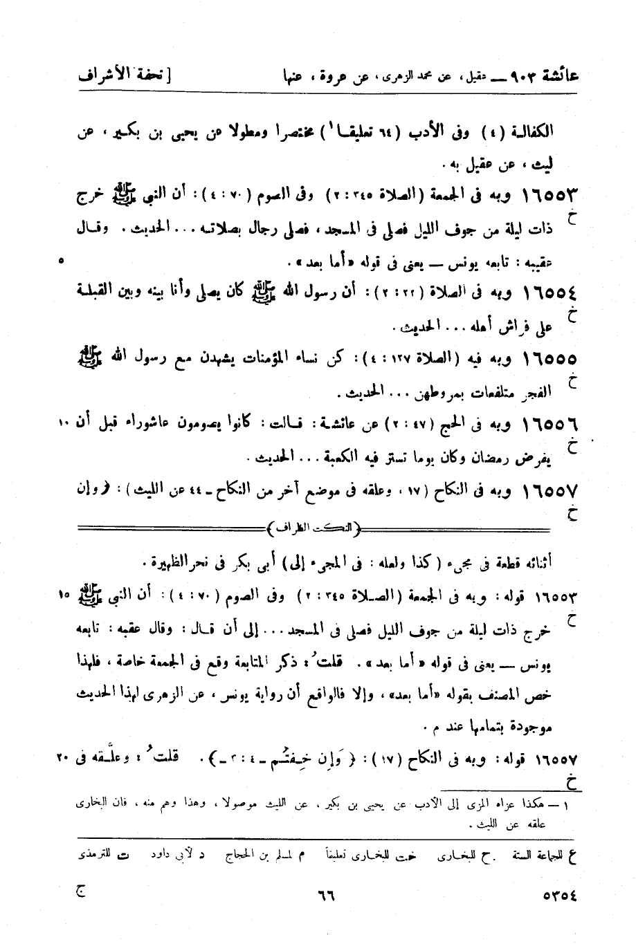16553 - وبه في الجمعة (الصلاة 345: 2) وفي الصوم (70: 4) : أن النبي صَلَّى اللَّهُ عَلَيْهِ وَسَلَّمَ خرج ذات ليلة من جوف الليل فصلى في المسجد، فصلى رجال بصلاته ... الحديث. وقال عقيبه: تابعه يونس - يعني في قوله أما بعد.