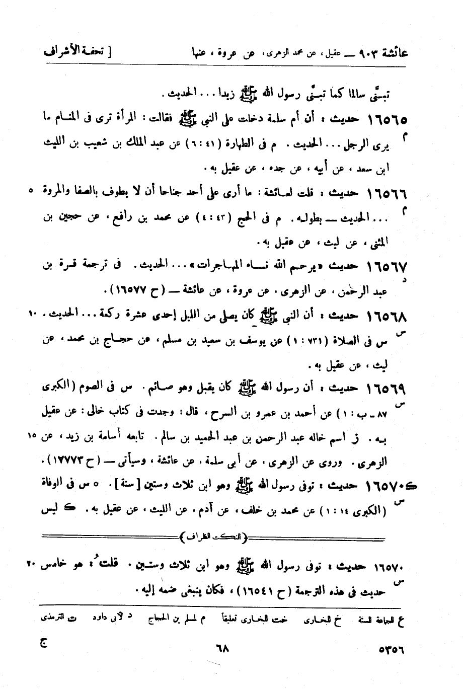 16567 -[د] حديث يرحم الله نساء المهاجرات ... الحديث. في ترجمة قرة بن عبد الرحمن، عن الزهري، عن عروة، عن عائشة - (ح 16577) .