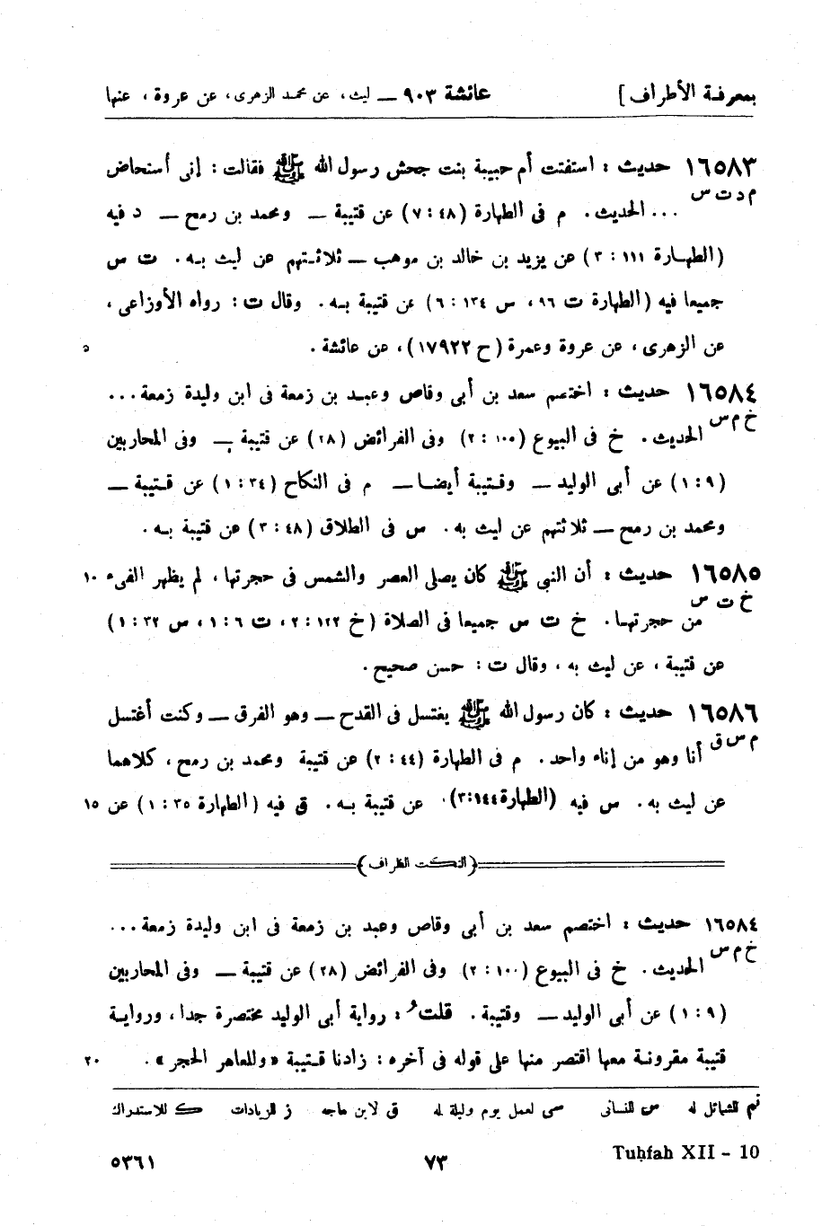 ت: رواه الأوزاعي، عن الزهري، عن عروة وعمرة (ح 17922) ، عن عائشة.